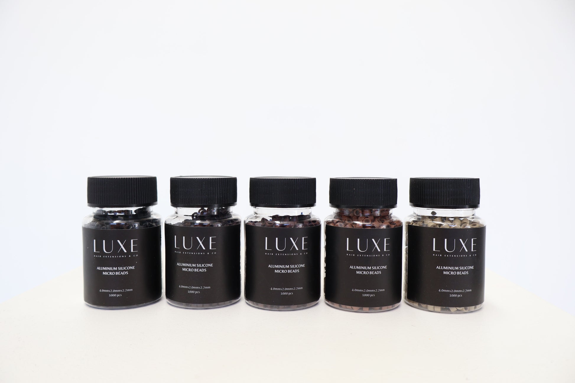 Each tub of beads contains 1000 micro beads. Our micro beads are super slim (4x2x2.7) making them easy to hide in the hair. Our beads come in 5 different colours making matching them to your clients hair a breeze!